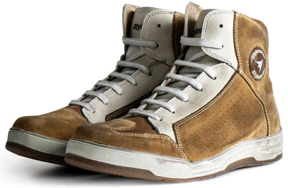 Перфорированные мотоциклетные туфли Stylmartin Colorado. Мотоциклетные кроссовки Colorado от Stylmartin отличаются водоотталкивающей перфорированной замшей и вставками из высококачественной кожи. Дышащая гигроскопичная подкладка из микрофибры делает ее удобной и свежей для повседневного использования, даже вне велосипеда. Задние рефлекторные вставки и противоскользящая резиновая подошва дополняют эту универсальную обувь. Особенности: Верх: водоотталкивающая перфорированная замша и водоотталкивающая кожа. Подкладка: дышащая гигроскопичная микрофибра. Анатомическая, сменная и дышащая стелька благодаря микроперфорации. отверстия Противоскользящая резиновая подошва Застежка на шнуровке Боковые и задние светоотражающие вставки Характеристики: Внутренняя формованная защита лодыжки из полиуретана с обеих сторон Защита кожаной экипировки Размеры: 36-47 СИЗ — защитная мотоциклетная обувь (EN 13634:2017) Содержание: 1 пара мотоциклетных туфель Stylmartin Colorado.