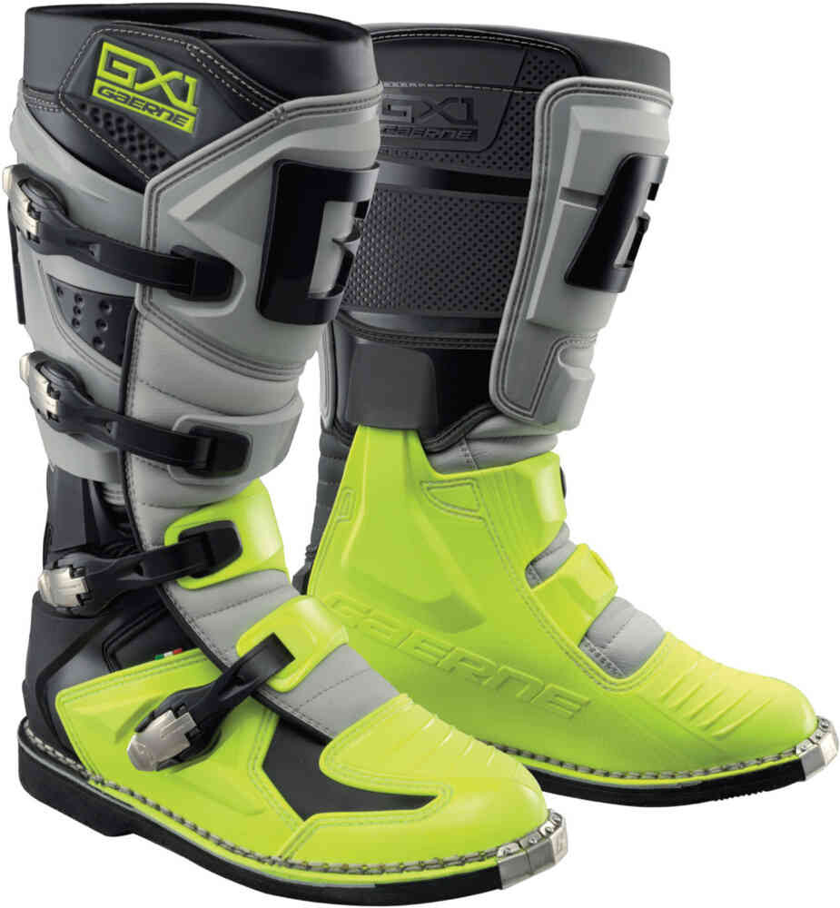 Мотокроссовые ботинки Goodyear Gaerne GX-1 GX-1: новейшие инновационные ботинки начального уровня для бездорожья! GX-1 сочетает в себе технологии и стиль, обеспечивающие защиту и производительность, обеспечивая мгновенный шаг к комфорту. Материал высокого качества, производство Италия. Структурная опора состоит из двух выступов, которые скользят внутри специальных карманов, избегая чрезмерного растяжения спереди и сзади, обеспечивая при этом гибкость вперед и назад и защиту от скручивания. Серия: MX Line Особенности: размеры: 39–49 тисненая замша на верхняя чувствительная сторона для улучшенного сцепления и термостойкости. эксклюзивная подошва из резиновой смеси с высоким сцеплением, обеспечивающая долговечность, превосходное сцепление и удобство во время езды. система застежки состоит из 4 сменных пряжек из легкого сплава для легкого, быстрого и точного застегивания. путем удаления первой две пряжки сверху, можно сделать отверстие шире, чтобы вместить большую ногу или коленный бандаж