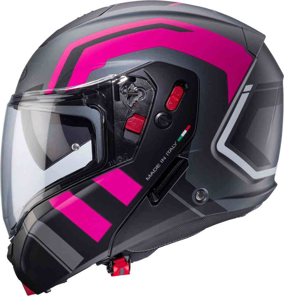 Дорожный шлем Caberg Horus X HORUS X — это откидной шлем Caberg, предназначенный как для туризма, так и для езды по городу. Благодаря двойной сертификации P/J можно ездить как с открытой (конфигурация J), так и с закрытой (конфигурация P) защитой подбородка. Особенности: Одобрение P/J Устойчивый к царапинам козырек Встроенный солнцезащитный козырек Двойной козырек (прозрачный и тонированный) Система быстрого снятия козырька Устойчивый к царапинам козырек Pinlock Max Vision Вентиляция головы Съемный и моющийся вкладыш Антидождевой профиль Съемный ветрозащитный экран Подготовлено для систем связи Bluetooth Характеристики: Материал: поликарбонат ABS Застежка: микрометрическая застежка-трещотка Вес: 1650 г +/- 50 г ECE 22.06 Содержимое: 1 дорожный шлем Caberg Horus X 1 тонированный козырек 1 козырек с замком Pinlock