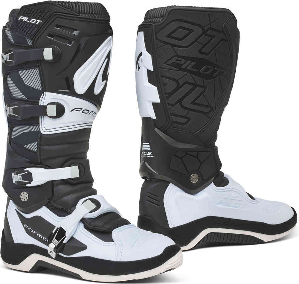 Мотокроссовые ботинки Forma Pilot. Комфорт, максимальная безопасность и повышенная чувствительность стопы — это лишь некоторые характеристики новых ботинок Forma Pilot MX с обновленной системой защиты от скручивания FCS. Особенности: Верх из синтетического материала Индивидуальный компаунд MX-B двойной плотности резиновая подошва для повышения устойчивости к истиранию и увеличения срока службы. Подошва MX-B со связующим звеном (с прострочкой Goodyear непосредственно на межподошве IN&FS.) для повышения жесткости и долговечности. FCS (Flex Control System) с защитой от скручивания и двойной задней частью. стоп Литая пластиковая защита Персонализированный резиновый термозахват Регулируемая застежка-липучка Сменные/регулируемые алюминиевые шарнирные пряжки Evo Security Lock Держатель ремня Security Lock Мягкая внутренняя подкладка Усиление из полиуретанового нейлона Мягкая полимерная набивка с пеной с эффектом памяти ИН&Ф.С. (встроенная промежуточная подошва из нейлона и стекловолокна) сменная стелька с системой APS (система воздушного насоса) запасные противоударные вставки Eva