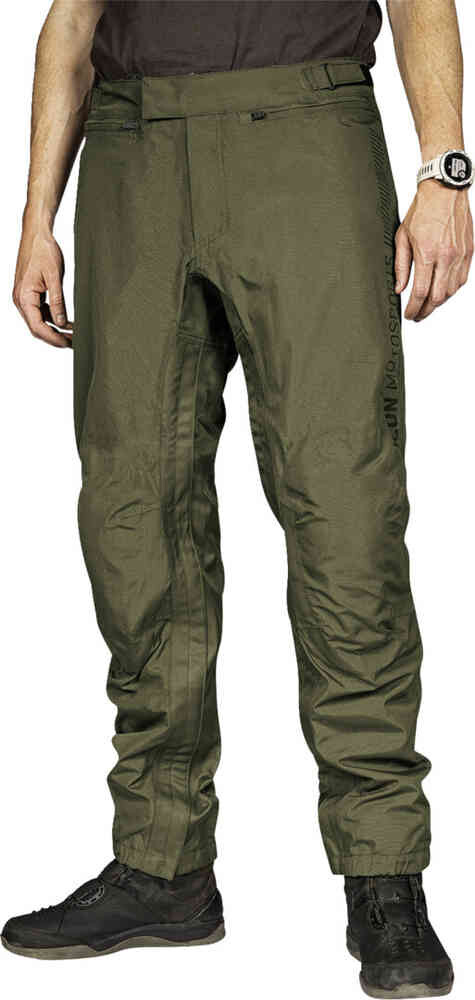 Водонепроницаемые мотоциклетные текстильные брюки Icon PDX 3. Брюки Icon PDX 3, созданные для защиты от влаги ниже пояса, готовы к уличным действиям. Они изготовлены из полностью проклеенного водонепроницаемого и дышащего материала Hycor™ и усилены полиэстером 300D в критических зонах. Кроме того, PDX 3 оснащен защитой коленей D30® класса A для полной защиты. Особенности: Водонепроницаемый и дышащий корпус Hycor™. Посадка Icon Overpant: рисунок корпуса достаточно обрезан, чтобы его можно было надеть поверх обычных брюк или, в зависимости от условиях, можно носить как отдельное изделие. Молнии по всей длине внутренних швов для легкого надевания и снятия Светоотражающие накладки Технические характеристики: Съемные наколенники D30® (EN 1621-1:2012) Внутренние усиления из полиэстера 300D СИЗ - защита мотоцикла брюки (EN 17092-4:2020, класс A) Содержимое: 1 х мотоциклетные текстильные брюки Icon PDX 3 1 х наколенники