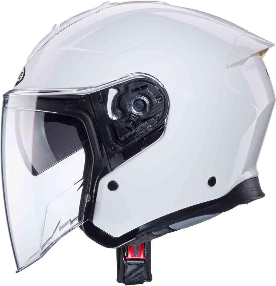 Реактивный шлем Caberg Flyon II FLYON II — это новая версия уже известного шлема с открытым лицом Caberg Flyon, выпущенного в 2020 году и предназначенного для поездок по городу. Особенности: Устойчивый к царапинам козырек Встроенный солнцезащитный козырек Система быстрого снятия для козырек Вентиляция головы Съемная и моющаяся внутренняя подкладка Противодождевой профиль Боковой замок козырька Подготовка для систем связи Bluetooth Технические характеристики: 2 размера корпуса Материал: стекловолокно Застежка: микрометрическая храповая застежка ECE 22.06 Содержимое: 1 реактивный шлем Caberg Flyon II