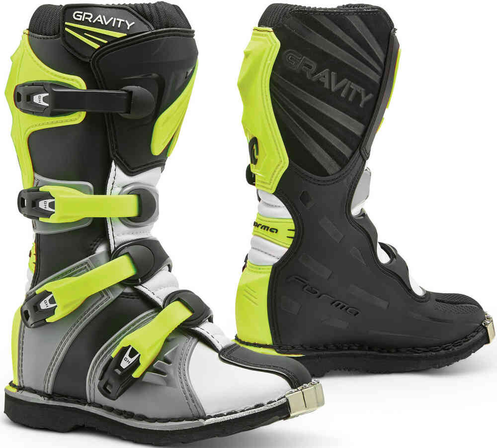 Ботинки для мотокросса Forma Gravity Благодаря собственным исследованиям и разработкам, а также постоянному техническому развитию, бренд смог предложить рынку Forma полный ассортимент продукции. Только самые высокие стандарты качества гарантировали, что Forma станет мировым брендом, одним из самых узнаваемых в мире. Особенности: Верх: Верх из кожи и синтетического материала Литая пластиковая защита Теплозащитный чехол из замши Регулируемая застежка-липучка Сменный/ регулируемые пластиковые пряжки GH Стальной носок Внутренняя часть: Мягкая внутренняя подкладка Усиление из полиуретанового нейлона Мягкая полимерная набивка с пеной с эффектом памяти Межподошва ISS (Incorporated Steel Shank) Сменная стелька с APS (системой воздушного насоса) Технические характеристики: EN 13595