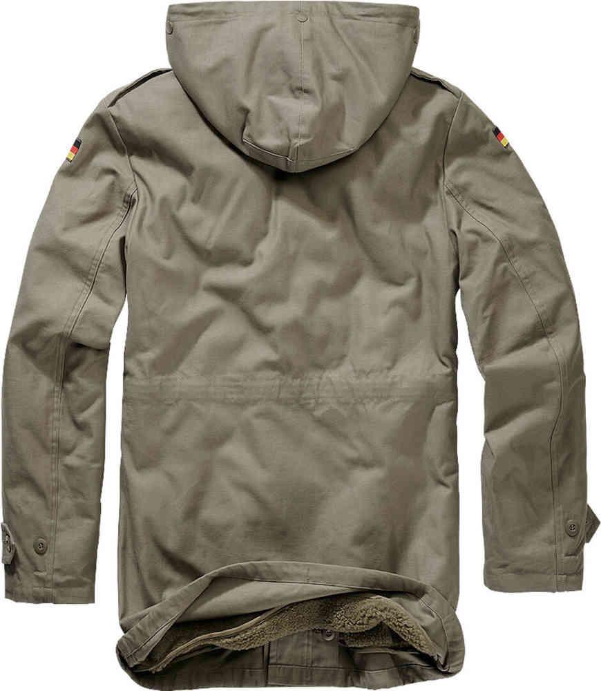 Куртка Brandit BW Parka Flag Наша цель — производить продукцию для людей, которые любят и ведут свой образ жизни. Неважно, фестиваль ли это, концерт, концерт или свободное время – продукция Brandit всегда будет подходящим нарядом. Особенности: 2 нагрудных кармана на пуговицах 2 боковых кармана на пуговицах внутренний карман на пуговицах потайная молния спереди съёмная приятная зимняя подкладка большой капюшон на кулиске регулируемая талия национальные знаки различия на обоих рукавах погоны вентиляционные отверстия под мышками регулируемые манжеты