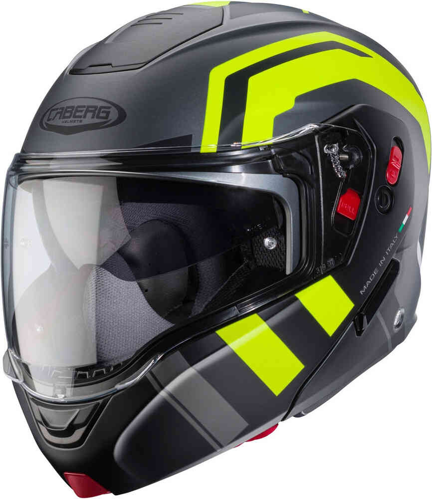 Дорожный шлем Caberg Horus X HORUS X — это откидной шлем Caberg, предназначенный как для туризма, так и для езды по городу. Благодаря двойной сертификации P/J можно ездить как с открытой (конфигурация J), так и с закрытой (конфигурация P) защитой подбородка. Особенности: Одобрение P/J Устойчивый к царапинам козырек Встроенный солнцезащитный козырек Двойной козырек (прозрачный и тонированный) Система быстрого снятия козырька Устойчивый к царапинам козырек Pinlock Max Vision Вентиляция головы Съемный и моющийся вкладыш Антидождевой профиль Съемный ветрозащитный экран Подготовлено для систем связи Bluetooth Характеристики: Материал: поликарбонат ABS Застежка: микрометрическая застежка-трещотка Вес: 1650 г +/- 50 г ECE 22.06 Содержимое: 1 дорожный шлем Caberg Horus X 1 тонированный козырек 1 козырек с замком Pinlock