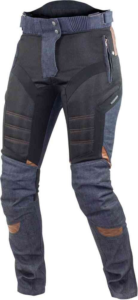Женские текстильные брюки Trilobite Airtech для мотоциклистов. Брюки Trilobite Airtech станут идеальным выбором для гонщиков, которым необходима максимальная защита от непогоды и дороги. Сочетание темно-синего денима, черной сетки и коричневых кожаных деталей придает брюкам уникальный вид. Особенности: Арамидное усиление на коленях, бедрах и ягодицах. Съёмные и регулируемые по высоте наколенники. Подготовлены для набедренных протекторов (доступны в качестве аксессуаров). Эластичные вставки Регулируемая талия Молнии YKK Рефлексная пряжа 3M Scotchlite Увеличенная высокая талия сзади Три внешних кармана Идеально сочетается с мотоциклетной курткой Airtech Легкий, эластичный и гибкий Воздухопроницаемый через сетчатые вставки Характеристики: Уровень 2, наколенники EN 1621-2 Арамидное усиление на коленях, бедрах и ягодицах