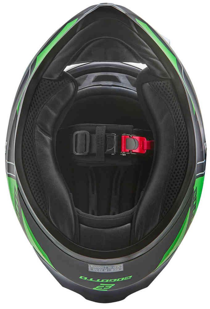 Шлем Bogotto V128 Strada Шлем Bogotto V128 Strada имеет спортивный аэродинамический дизайн и обеспечивает максимальный комфорт при ношении. Особенности: термопластиковый корпус прозрачный козырек с возможностью запирания встроенный солнцезащитный козырек съемная и моющаяся подкладка оптимизированная система вентиляции воздуха Технические характеристики: ECE 22:05 Застежка: микрометрическая пряжка Вес (размер M): 1520 г (+/-50 г) Подготовка для крепления Pinlock Содержимое: 1 шлем Bogotto V128 Strada 1 сумка для шлема