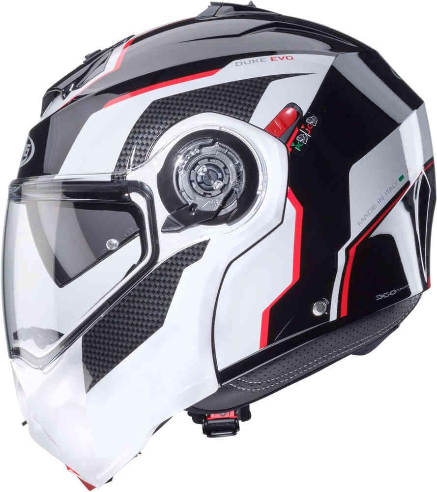 Шлем Caberg Duke Evo Move DUKE EVO — это эволюция культового откидного шлема Caberg DUKE, выпущенного в 2012 году и получившего большой успех среди мотоциклистов во всем мире благодаря отличному соотношению цены и качества, компактным размерам и весу, а также высоким стандартам безопасности. и 5-звездочная оценка по тесту SHARP. Особенности: Сертификат P/J Защитный от запотевания козырек Встроенный солнцезащитный козырек Система быстрого крепления козырька Двойной антитурбулентный поворот шеи Устойчивый к царапинам козырек Pinlock Внутренняя вентиляция циркуляция Съемная и моющаяся внутренняя подкладка Защитные края от дождя Съемный ветрозащитный ограничитель Подготовка для систем связи Bluetooth Технические характеристики: Материал: поликарбонат ABS Застежка: микрометрическая храповая застежка Вес: 1600 г +/- 50 г ECE 22.06 Содержимое: 1 шлем Caberg Duke Evo Move 1 визор Pinlock