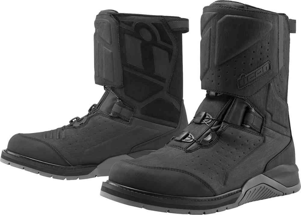 Водонепроницаемые мотоциклетные ботинки Icon Alcan WP Ботинки Alcan™ от Icon созданы для защиты от непогоды и асфальта. Верх выполнен из кожи TechTuff®, известной своей долговечностью. Усиленная пластина для голени обеспечивает защиту системы подгонки BOA® для оптимальной посадки. Водонепроницаемая и дышащая подкладка сохраняет внутреннюю часть обуви сухой, а вставки D3O® на щиколотке обеспечивают повышенную защиту. Подошва представляет собой комбинированную конструкцию, состоящую из внутреннего усиленного стержня, амортизации из пеноматериала с высокой отдачей и нижней части из маслостойкой и нескользящей резины. Особенности: Кожаный верх TechTuff® Водонепроницаемый (уровень Icon 3) BOA® Fit System Cosmo HBR водонепроницаемая и дышащая подкладка ботинок Водонепроницаемая и дышащая подкладка eVent® Масло- и скользящая подошва Стелька из пеноматериала EVA с высокой отдачей Технические характеристики: Вставки на щиколотке D30® с запахом Усиленная накладка на рычаг переключения передач Защитное мотоциклетное снаряжение в соответствии с ( ЕС) Регламент 2016/425 СИЗ — защитная мотоциклетная обувь (EN 13634:2017) Содержимое: 1 пара мотоциклетных ботинок Icon Alcan WP