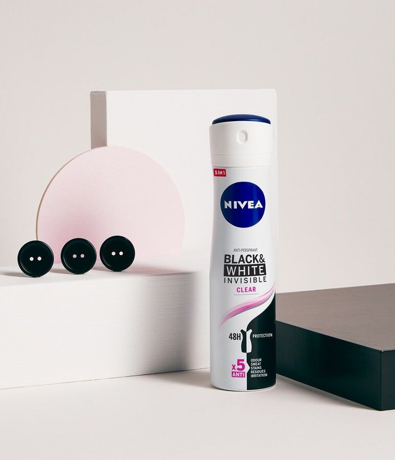 Антиперспирант Nivea Black&White Invisible Clear – продукт, который обеспечит вам эффективную и надежную защиту от потоотделения, без риска испачкать любимую одежду. Обеспечивает защиту 5-в-1 и защищает от неприятного запаха, пота, желтых пятен, белых пятен и раздражений. Антиперспирант не оставляет желтых пятен на белой одежде и белых следов на черной одежде. Уникальная формула защищает от чрезмерного потоотделения в течение 48 часов, одновременно заботясь о вашей коже. Нежный и женственный аромат дарит ощущение свежести. Его нежное воздействие на кожу подтверждено дерматологически.