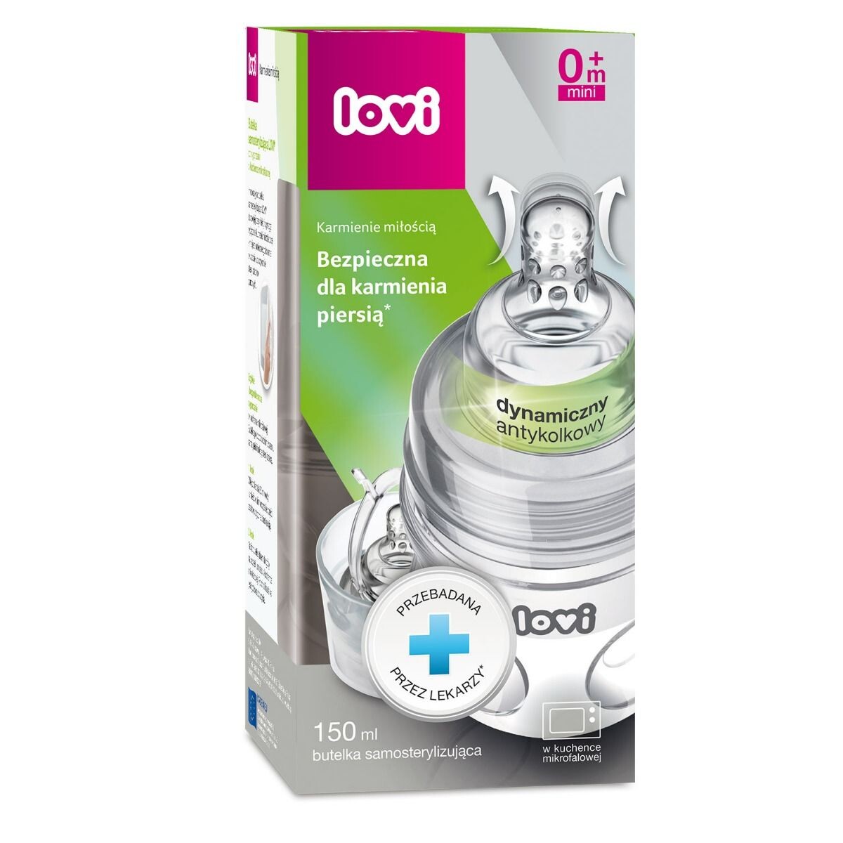 Самостерилизующаяся бутылочка, созданная брендом LOVI, — это инновационный продукт. Не нарушает естественный сосательный рефлекс ребенка, находящегося на грудном вскармливании (оснащена динамической соской, как и все бутылочки LOVI). Он имеет специально разработанную крышку, которая позволяет стерилизовать бутылочку и все ее компоненты всего за 90 секунд в микроволновой печи. Для этого не нужно использовать дополнительные сосуды, ведь инновация заключается в том, что стерилизатором служит сама бутылочка.