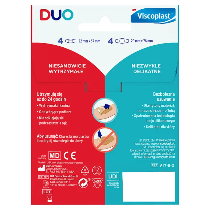 В следующий раз, когда вы закроете незначительную царапину или рану, восстановите пластыри в том виде, в каком они должны быть: пластыри DUO прочно прилипают и аккуратно снимаются. С пластырями Viscoplast DUO вам больше не придется выбирать между безболезненным снятием пластыря и тем, чтобы он оставался на месте до тех пор, пока он не будет удален. Теперь вы можете иметь и то, и другое, больше никаких болезненных гримас, когда вы снимаете пластырь. Долговечный клей позволяет носить до 24 часов, но он достаточно мягок, чтобы его можно было легко удалить...