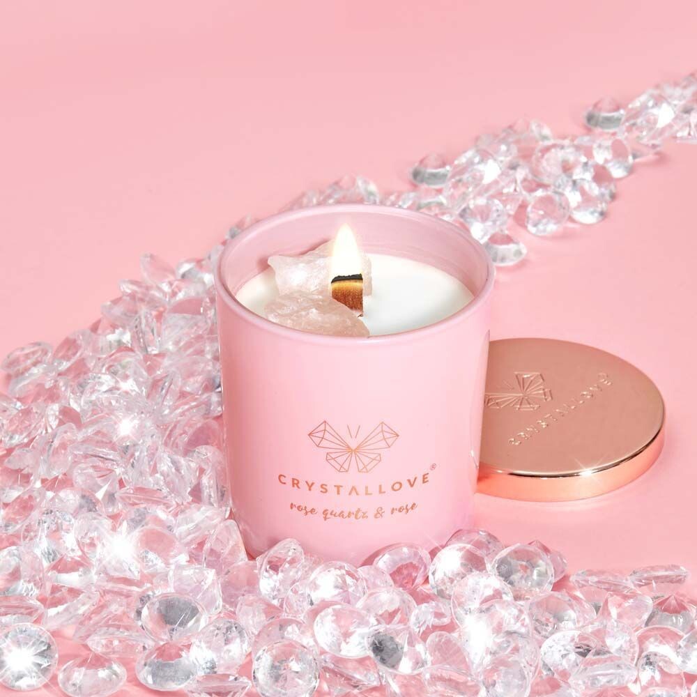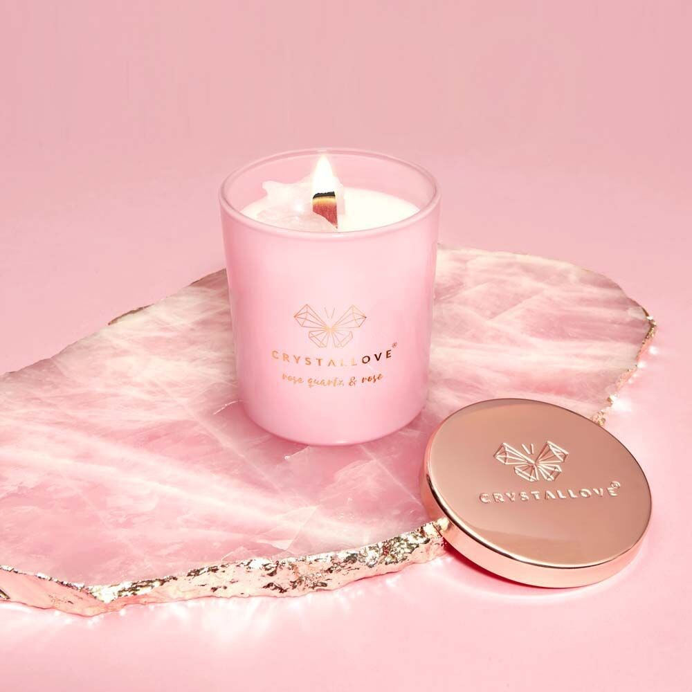 Наполненный энергией розового кварца, который считается самым важным камнем любви. Насыщенная ароматами свеча наполнит ваш дом свежим ароматом розы с нотками герани, сливы и пиона. Изготовлена полностью из натурального и биоразлагаемого соевого воска, экологически чистого. Свеча имеет деревянный фитиль, который горит уникальным и очаровательным пламенем. Роскошная крышка из розового золота защитит воск от внешних загрязнений. Стеклянная банка украшена логотипом бренда.