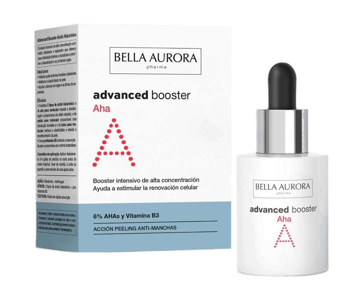 Bella Aurora Advanced Booster с AHA-кислотами – это высококонцентрированная сыворотка для ежедневного применения с деликатным отшелушивающим и восстанавливающим эффектом. Усовершенствованная формула, основанная на сочетании трех кислот: салициловой, гликолевой и миндальной, эффективно, но мягко отшелушивает омертвевшую кожу, уменьшая несовершенства и изменения цвета, выравнивая тон и текстуру кожи. Сыворотка идеальна для ухода за комбинированной и жирной кожей, склонной к появлению черных точек – она очищает и сужает поры, разглаживает и смягчает эпидермис, обеспечивает здоровое, длительное сияние. Безопасный рецепт позволяет использовать также в случае чувствительной кожи, склонной к раздражению.