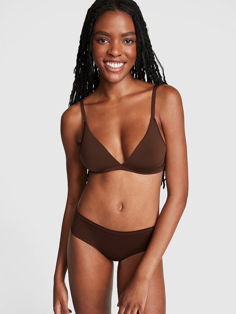 Бюстгальтер с треугольными чашечками выполненный из мягкого эластичного материала. Модель облегающего кроя подчеркивающая фигуру.