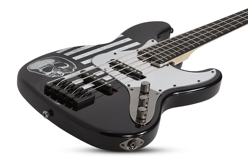 Басс гитара Schecter JD DeServio J-4 Gloss Black with 'BLS' Distressed Flag