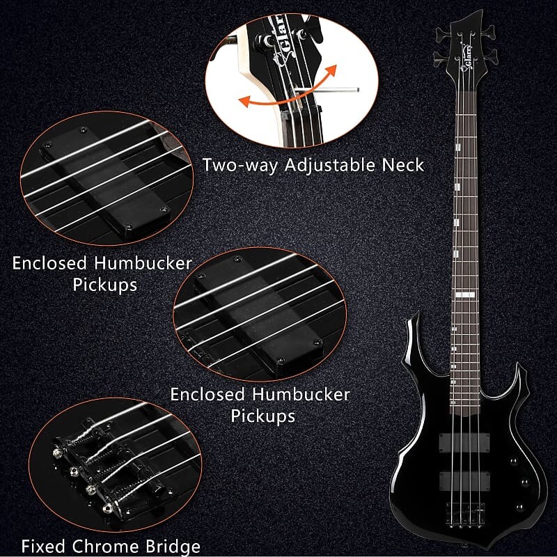 Басс гитара Glarry Black Burning Fire Electric Bass Guitar HH Pickups + 20W Amplifier 29 479₽