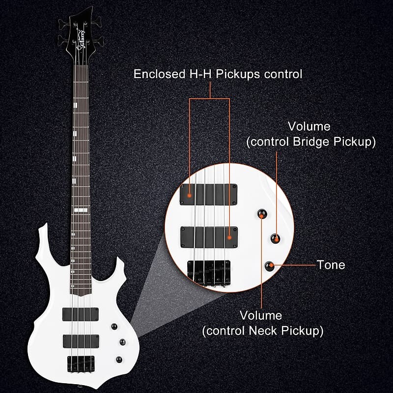 Басс гитара Glarry White Burning Fire Electric Bass Guitar HH Pickups + 20W Amplifier 29 479₽