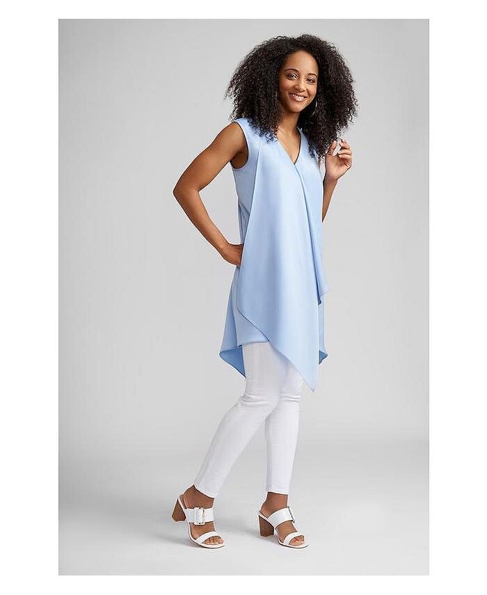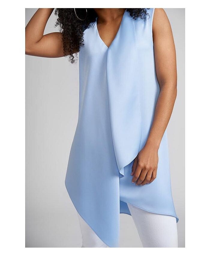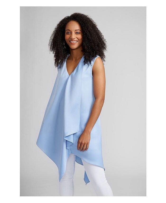 Небесно-голубая туника Jamie без рукавов из коллекции Caldwell Collection создает элегантный многослойный образ с асимметричным подолом и красивым драпированным воротником. Изготовленное из роскошного полиэфирного атласа, оно имеет длинный силуэт и идеально подходит для ношения отдельно или в качестве многослойной одежды. Это идеально подходит для модного поклонника.