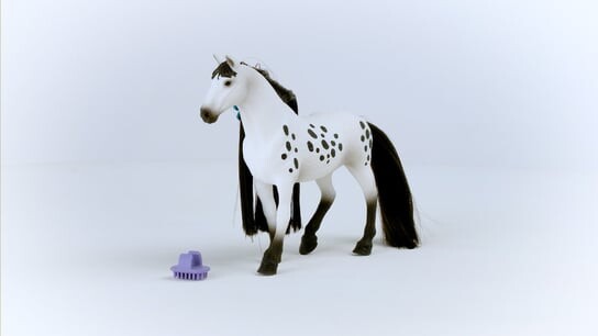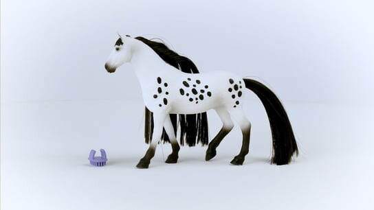 Красивый жеребец-кнабструппер Разве он не красив? Жеребец Кнабструппер привлекает внимание своей красивой пятнистой шерстью. Но это еще не все: его хвост и грива исключительно длинные и пышные. К счастью, у него всегда с собой гребешок для пальцев, благодаря которому он может расчесать свои длинные волосы до шелковистого блеска.