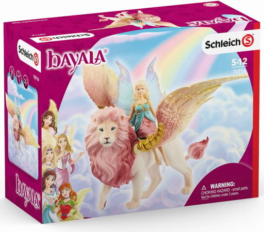 В наборе изображен крылатый лев и сидящая на нем фея, выполненные из пластика.