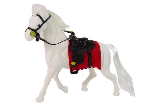 В комплект входит фигурка белой, приятной на ощупь лошади с черным седлом и красной седельной попоной, что делает ее прекрасным дополнением коллекции. Длинный хвост и грива идеально подходят для расчесывания и заплетения кос, что помогает вашему ребенку развивать навыки ручного труда.