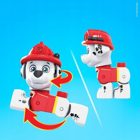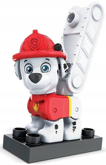 В набор входит фигурка отважного пожарного Маршалла, которую можно принимать в различных позах, и два дополнительных элемента: базовый блок и пожарная лестница.