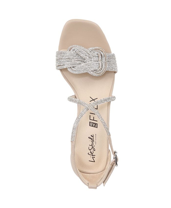 Сверкайте и сияйте в этих потрясающих классических босоножках для женщин с мягкими ремешками, украшенными стразами. Идеально подходит для свадеб и особых случаев. Ремешки из искусственной кожи и стразов, открытый квадратный носок, чашеобразный каблук, регулируемая эластичная пряжка и потрясающий переплетенный дизайн со стразами на носке. Мягкая система Комфортный пакет обеспечивает поддержку, гибкость и амортизацию в течение всего дня. Технология Fab Flex и очень гибкий каблук на платформе с мягкой подкладкой обеспечивают максимальный комфорт. Тяговая подошва для дополнительной устойчивости. Округлый блочный каблук Just Right Height высотой 2 дюйма.