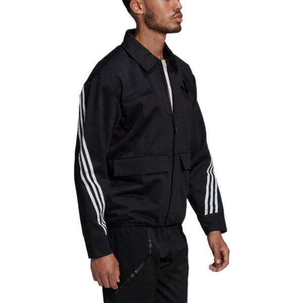 Куртка Men's adidas Stripe Printing Logo Zipper Lapel Long Sleeves Jacket Black, черный