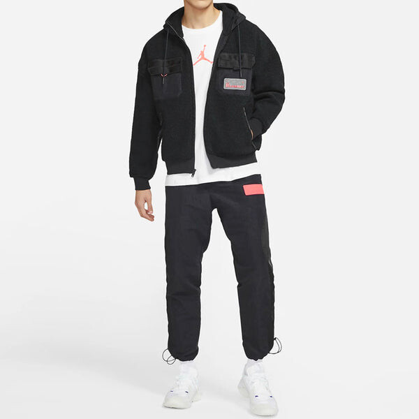 Куртка Air Jordan Zipper Fleece Windproof Stay Warm Hooded Jacket Black, черный