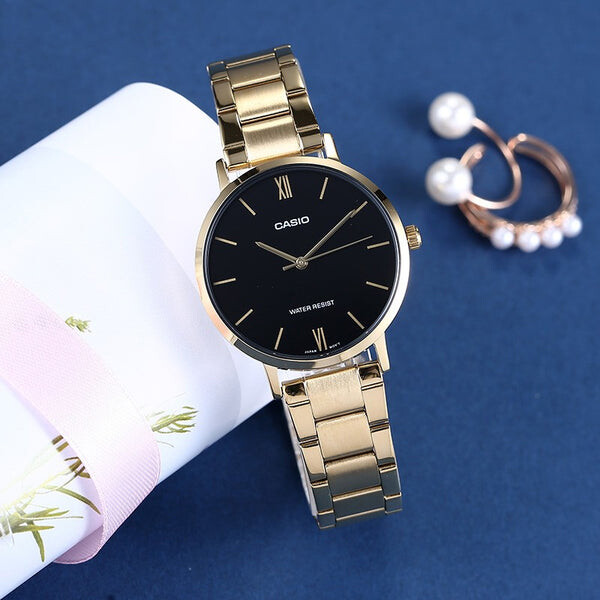 Часы CASIO Quartz Waterproof Black Watch Dial Black Analog, черный 15 818₽