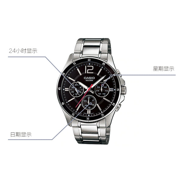 Часы CASIO Waterproof Stainless Steel Strap Quartz Mens Black Analog, черный