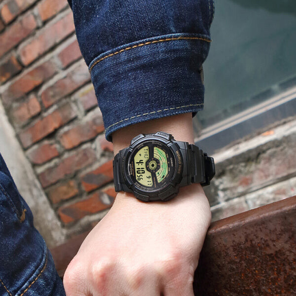 Часы CASIO Sports Waterproof Stainless Steel Strap Mens Black Digital, черный