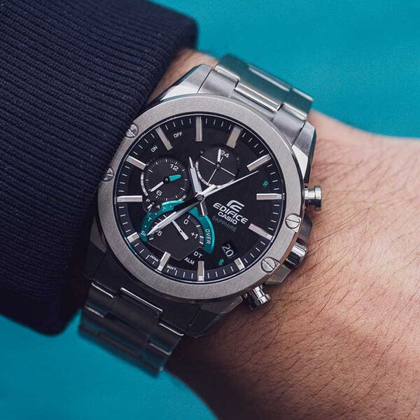 Часы CASIO EDIFICE Quartz Waterproof Sapphire Crystal Solar Powered Black DialSilver Strap Mens BlackSilver Analog, черный 41 399₽