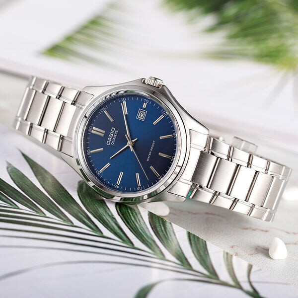 Часы CASIO Waterproof Stainless Steel Strap Blue Dial Mens Blue Analog, синий 13 588₽