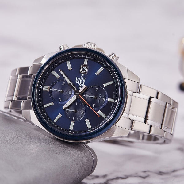 Часы CASIO EDIFICE Quartz Waterproof Sapphire Crystal Mens Blue Analog, синий