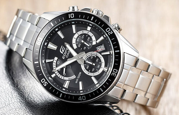 Часы CASIO EDIFICE Waterproof Sports Stainless Steel Strap Mens Black Analog, черный