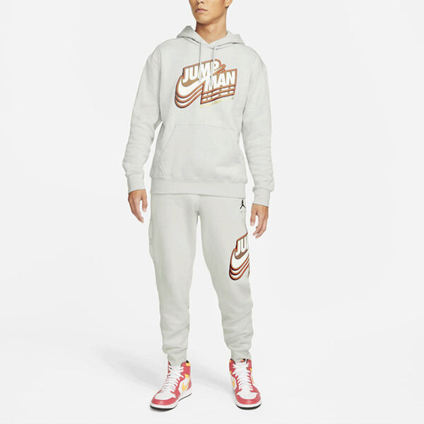 Толстовка Men's Air Jordan Logo Pattern Fleece Lined Printing Loose Light Grey, белый 16 018₽