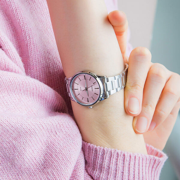 Часы CASIO Waterproof Stainless Steel Strap Pink Analog, розовый