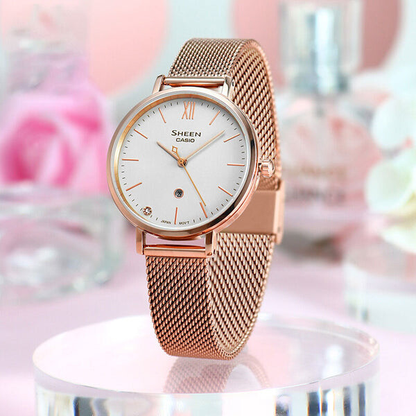 Часы CASIO SHEEN Waterproof Quartz Sapphire Crystal Rose Gold Analog, розовый
