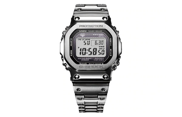GMW-5000 — оригинальная модель G-Shock 1983 года. Серия GMW-B5000 унаследовала ее характерный квадратный дизайн и получила полностью металлическую отделку вместе с улучшенными функциями, включая связь со смартфоном. Технология высокоплотного монтажа также позволяет часам сохранять свой размер. Задняя часть часов имеет прочную винтовую застежку и обработана DLC для устойчивости к износу.