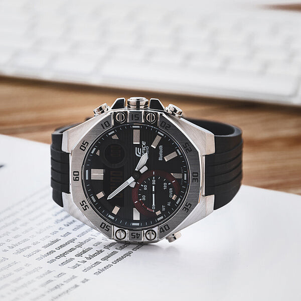 Часы CASIO EDIFICE Waterproof Sports Sapphire Crystal Quartz Solar Powered Mens SilverBlack Analog/Digital Combo, черный