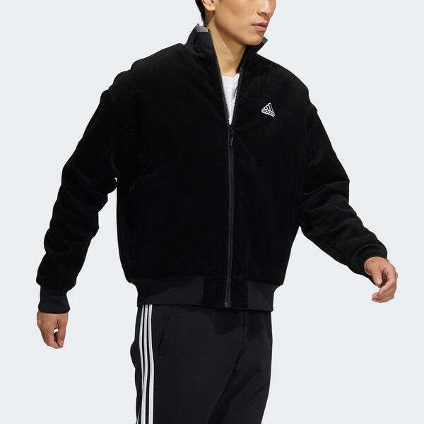 Куртка adidas M Corduroy Jkt Solid Color Logo Stand Collar Sports Jacket Black, черный