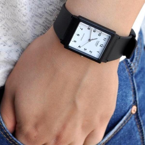 Часы CASIO Quartz Waterproof White DialBlack Strap Mens WhiteBlack Analog, белый