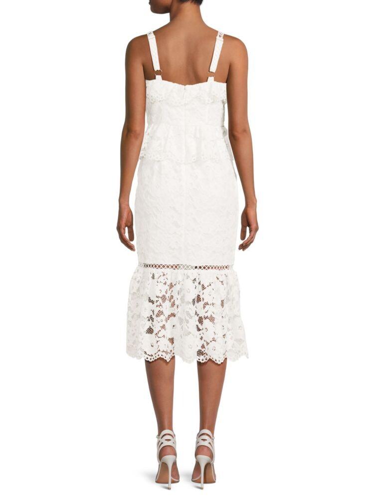 Кружевное платье миди Leigh с баской Likely, белый 8 848₽