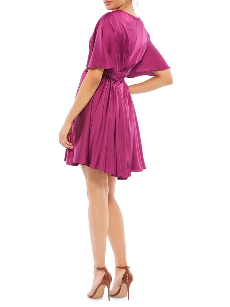 Атласное мини-платье с накидкой Mac Duggal, вишня
