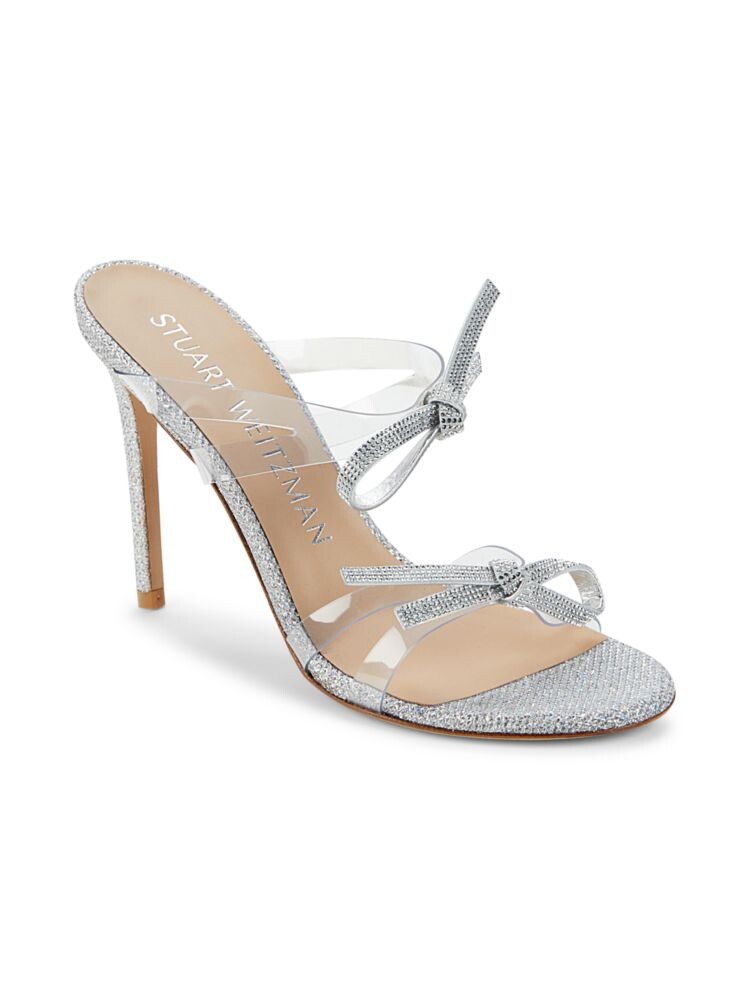 Сандалии с декорированным бантом Stuart Weitzman, цвет Clear Crystal