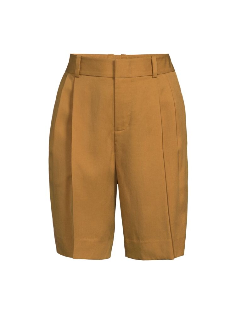 Плиссированные шорты с высокой посадкой Vince, коричневый