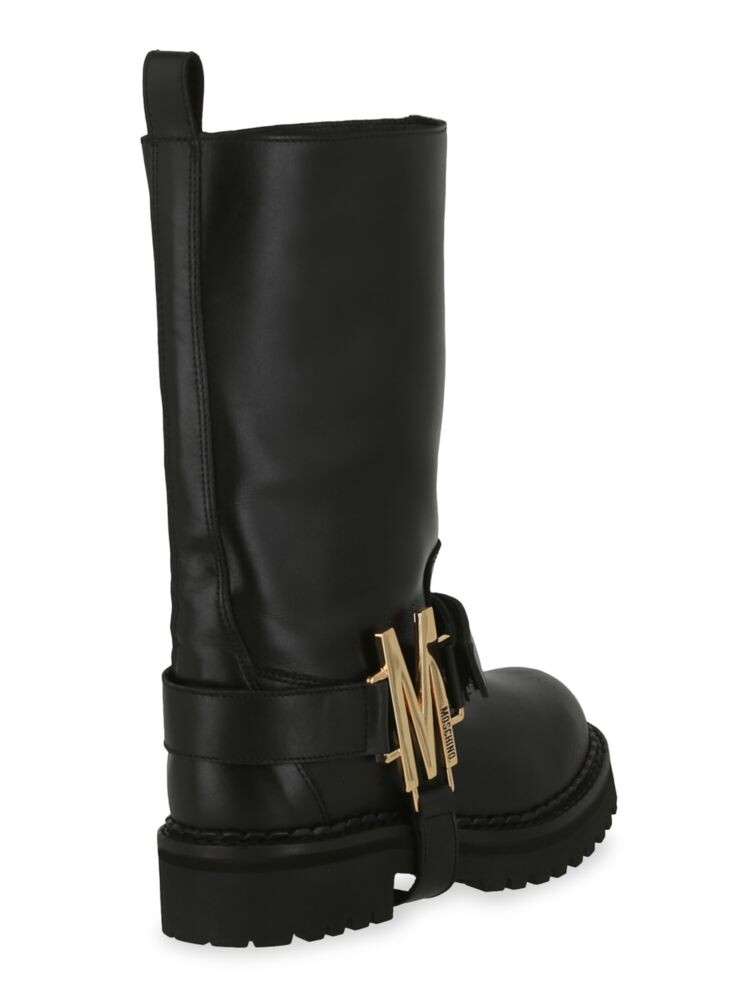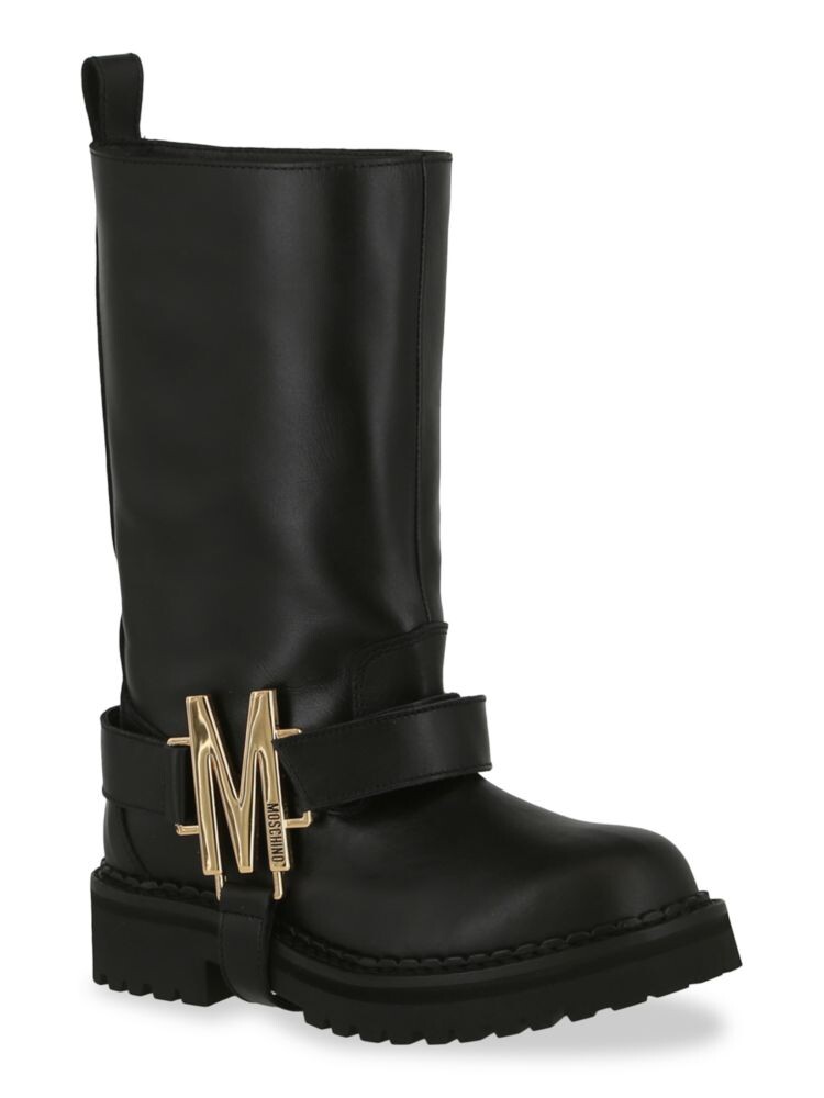 Кожаные байкерские ботинки на подошве с выступами Moschino, черный
