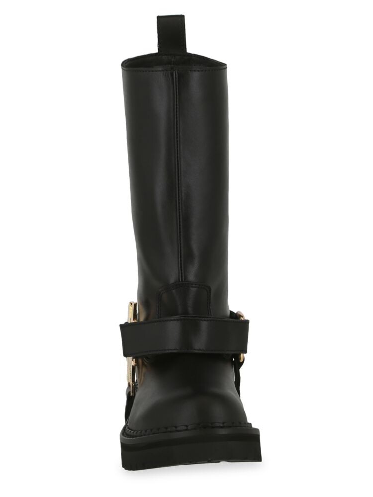 Кожаные байкерские ботинки на подошве с выступами Moschino, черный 28 687₽